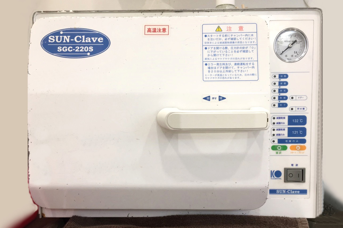 オートクレーブとは、患者様に使用するピンセットやミラーなどを滅菌するための機械です。