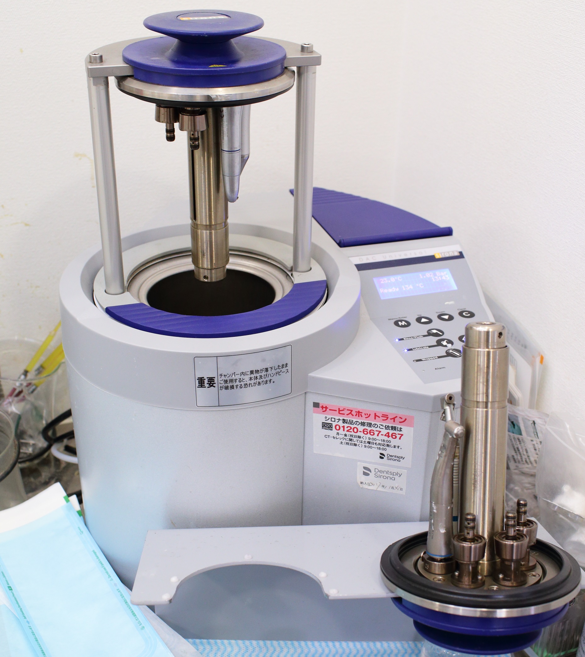 歯を削る際に使用する金属の機械を「タービン」と言いますが、従来のオートクレーブではタービン内に入り込んだ唾液や血液を完全に滅菌することは出来ませんでした。そのため、当院では「DACユニバーサル」を導入しております。この機械を使用することでタービン内部まで完全に滅菌することが可能ですので、患者様には安心して治療をお受けいただけます。