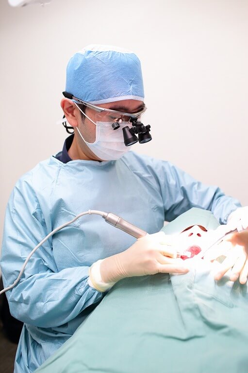 インプラント埋入人工歯根を埋め込みます。しっかりと麻酔して行いますので痛みが心配な方もご安心下さい。
