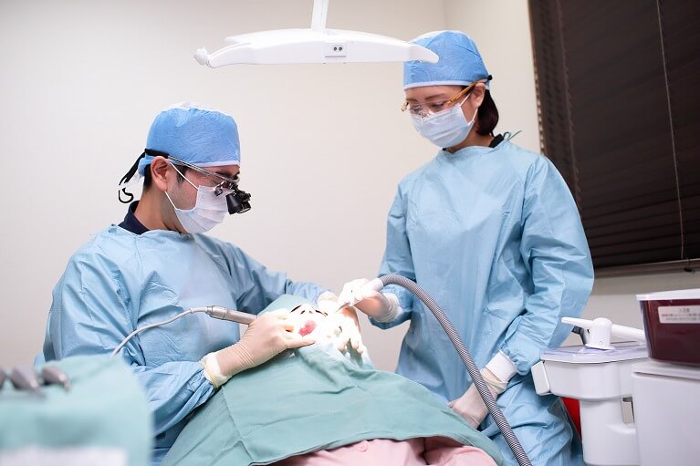 糖尿病や高血圧、心疾患などの全身疾患をお持ちの患者様の場合、きちんと疾患のコントロールが行われているのであればインプラント治療を行えますが治療に対する不安や恐怖心が血圧や呼吸に悪い影響を与える可能性があるため静脈内鎮静法(IVsedation)の併用や全身管理が必要になります。