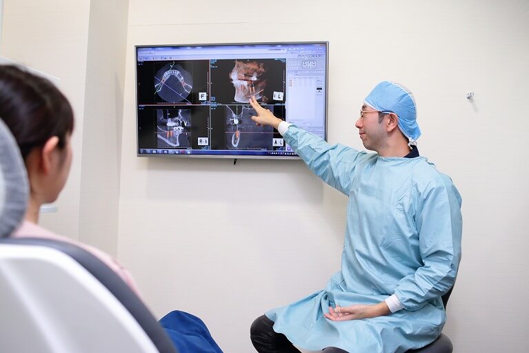 精密な治療をするためにも骨の位置を事前にしっかりと把握する検査が重要で、治療後に患者様が違和感を感じることのないよう、またトラブルの起きにくいインプラント治療を行うために必要となります。