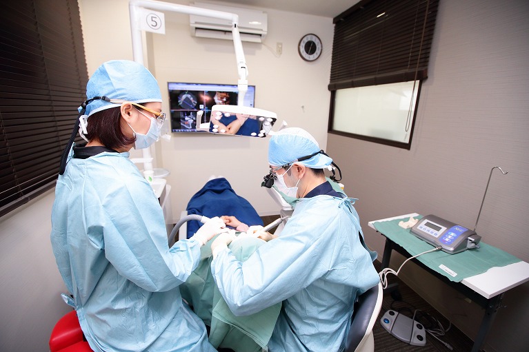 例えば「抜歯即時埋入」という、歯を抜くと同時にインプラントを埋め込む方法は、通常は「抜歯」「インプラントの埋め込み」と合計2回の手術が必要なインプラント治療を、1回で済ませることが出来るという治療法です。