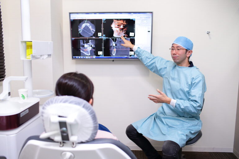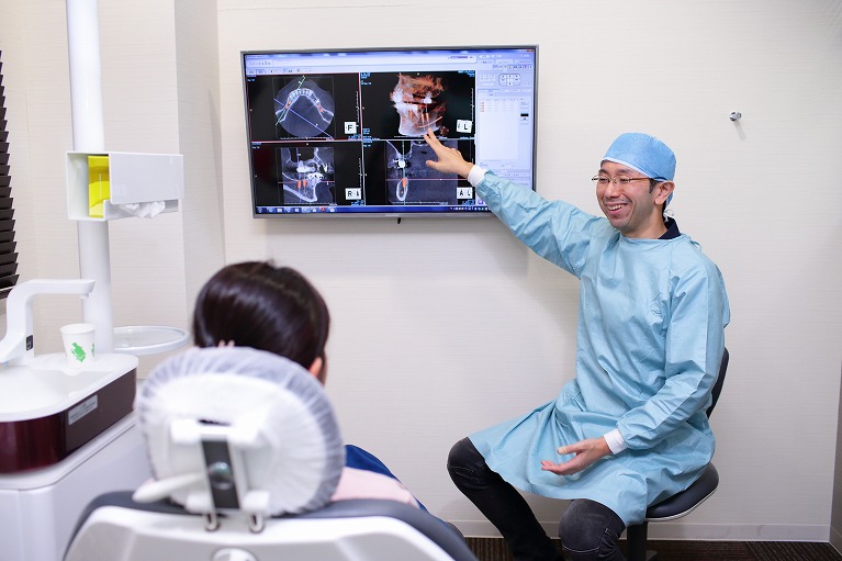 当院では、インプラント治療を始める前に、必ずカウンセリングを実施しています。カウンセリングでは、患者様のお口の状態や治療に対するご希望、不安に感じていることなどを丁寧にお伺いします。
