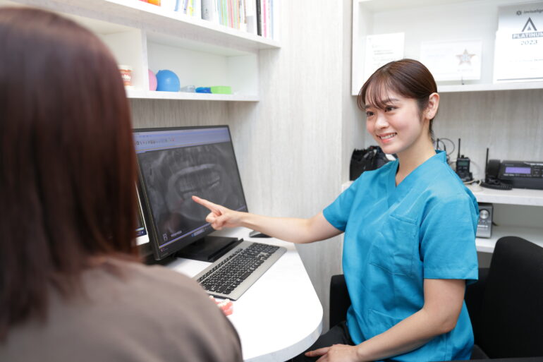 治療計画が決定したら、患者様に分かりやすく丁寧に説明を行います。治療内容はもちろん、治療期間、費用、リスク、注意事項などについて、模型や図などを用いながら詳しくご説明いたします。患者様に十分にご理解・ご納得いただいた上で、治療を開始いたしますので、ご不明な点やご不安なことがあれば、お気軽にご質問ください。