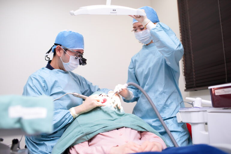 そして数ヶ月間、移植した骨組織が固まるのを待ってからインプラントを埋め込む手術を行っていきます。