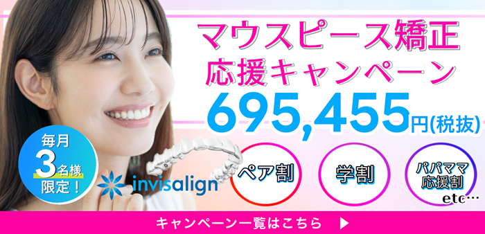 マウスピース矯正は矯正中の見た目を気にしたくない方におすすめです。プラチナプロバイダーの認定を受けている歯科医師によるインビザラインが可能ですのでお気軽にご相談ください。