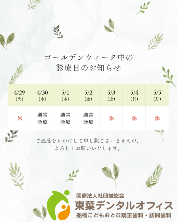 船橋の歯医者 東葉デンタルオフィスでございます。