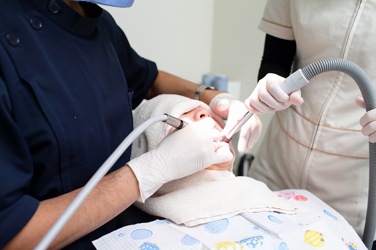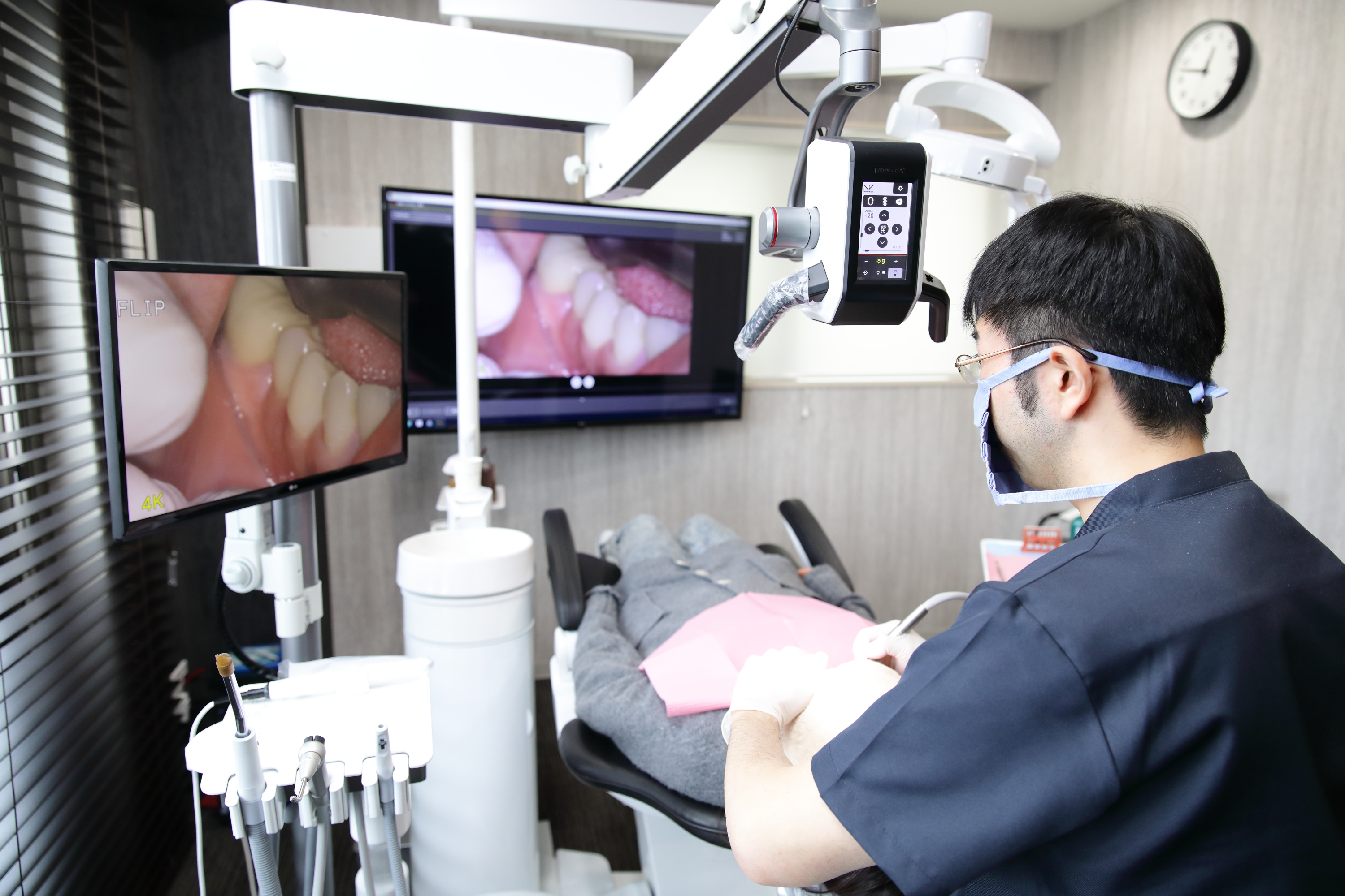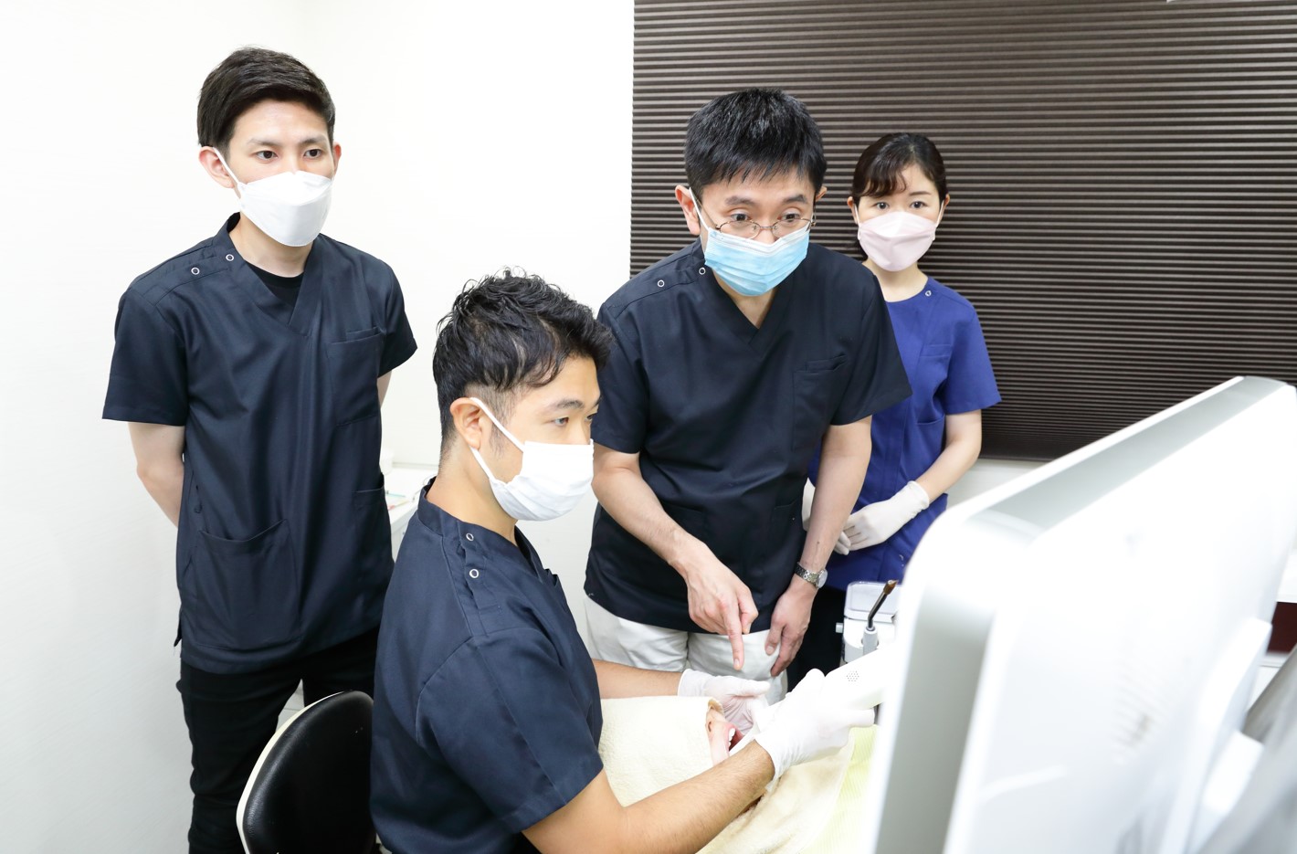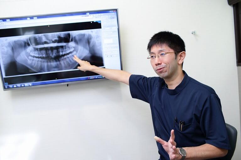 まず初めに、医師が丁寧にカウンセリングを行います。お話を伺いながら、不安な気持ちを解消するためのアドバイスや、治療についての詳しい説明を行います。治療の内容や進め方については、患者さんが理解してから進めていくことを心がけています。痛みに配慮した治療