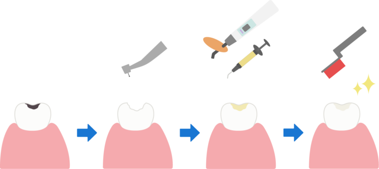必要最小限の処理を行い、CRを丁寧に築盛します。